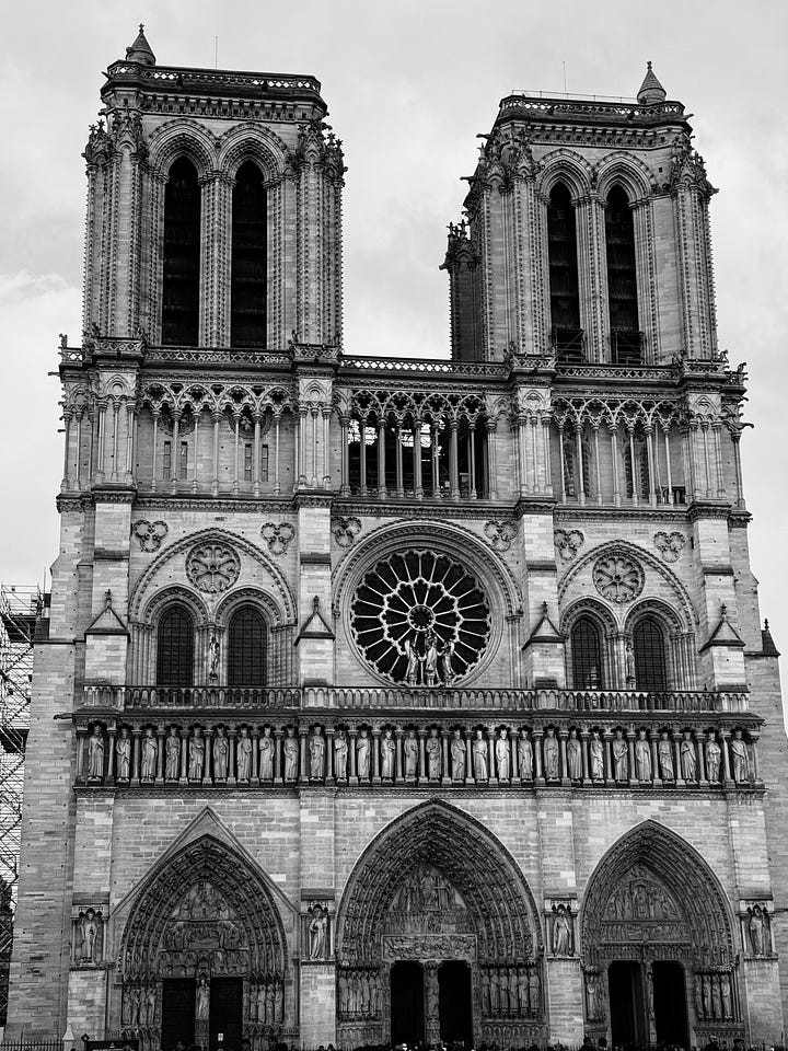 Enough of the technical stuff, let me start my rambles! I intend to paint you a very pretty and thorough picture. First of all, Paris would simply not be Paris without some astoundingly beautiful architecture (dare I say their architecture is nicer overall than London’s?). The minute you step out of whichever metro station, there is no way around all the towering Parisian buildings, ornate wrought iron balconies, and picturesque streets melting into one another. But the churches in particular are ornamental enough to make the most obtuse of souls believe, especially diehard fans of Gothic architecture like myself. We briefly stopped by the “Notre-Dame” on our first day to check on its restoration— I remember the day the cathedral burned in 2019 so vividly; my arts teacher wept the most bitter tears I have ever witnessed at the news. Fortunately, it seems progress on the cathedral work is nearing completion. Additionally, we walked into the beautiful “Église Saint Sulpice” in the South (6th arrondissement), as well as my beloved and familiar “Église Saint-Eustache” in the 2nd arrondissement. Both are marvels of human creation, to be sure. Divine monstrosities of brick and adornment.