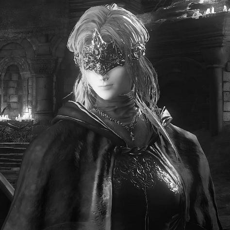 This colder turn of the year always makes me yearn for medievalism; snow-kissed steel, dewdrops on blades. Desolation and devotion, love and violence. Twisting, grotesque spires on towering churches. I revisit the likes of Chrétien de Troyes, the Arthurian legends, but also the bitter gloom of video games like “Elden Ring” (2022)2 and “Dark Souls 3” (2016), the fantastical twists of “Game of Thrones” (2011-2019) or “House of the Dragon” (2022-). I like to feel the frigid cold of it seep into my bones, I enjoy the bleak melancholy of the season. The barren tree branches extend overhead like a network of arteries or nerves, mythology in bundles, feeding off of one another. The intertwined discipline of storytelling, my dear.