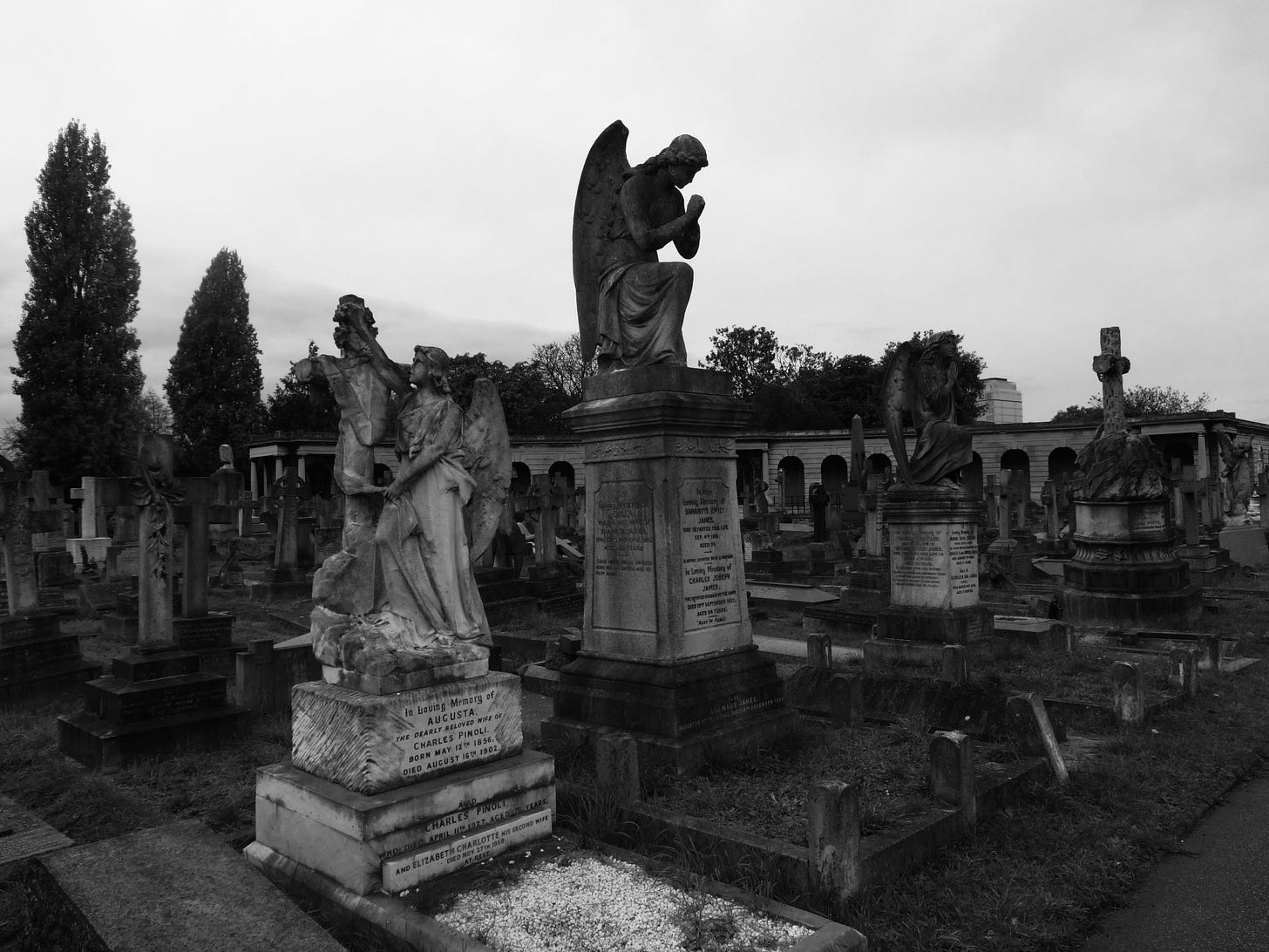 Angels were the subject of the second talk (hosted by Dr. Emma Liggins), or more specifically the phenomenon of female angel statues in cemeteries, the Gothic “angels of death”. The lecture looked at the ubiquitousness of the mourner-as-woman, with examples from Southern Cemetery in Manchester, weaving a vast web of connections across art and literature; there is the Victorian ideal of the “angel in the house”, but on the other hand, all the known angels in [Christian] scripture are male. And yet still the woman gets cast as maiden, mourner, widow, angel. Looming atop the resting place of her beloved husband. Always beloved, never anything less. The carved wings, stuck, weeping— the angel in stone as mirror for the wife left behind. Pointing at the heavens as if mourning abandonment.