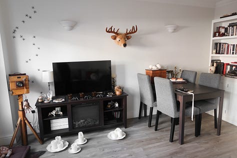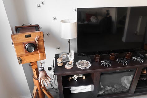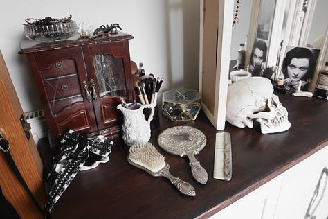 So much ado about nothing, all of this moving business! Truly, I do not wish to bore you with dull specifics. I made a solemn vow to avoid all boring fare like the plague. But the show I want to put on needs props that are hidden away in boxes, stacked in my study and my parlour. Currently there are no showgirl boas or feather fans to dance with, just the scrape of bare branches against centuries-old glass. A different song altogether. All of the windows in my home are original to the 1830s, that small period of time when the Georgians encased brick walls in metal, before adding a second layer of bricks. Like living in a giant jewellery box, in a way1. And I do intend to decorate accordingly. My home is a treasure trove of collected melancholies, patchouli incense, and carved antiques.