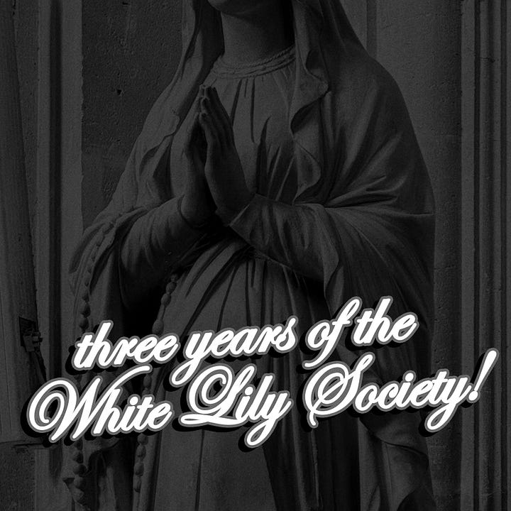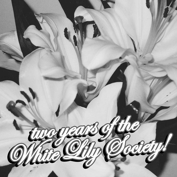 April 3rd - After a few requests, submissions to the White Lily Society Substack officially open. Additionally, the White Lily Society acquires its own domain: www.thewhitelilysociety.com <3